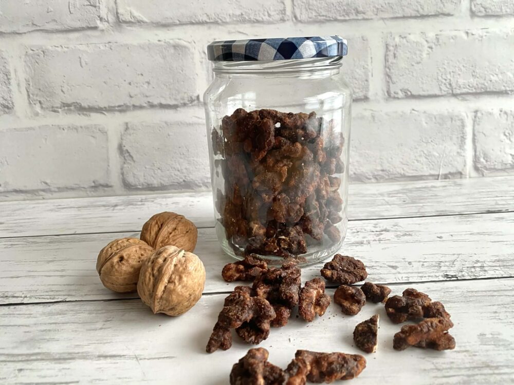●完全に冷めて瓶にナッツを移したらフタをして冷蔵庫で約2週間保管可能。